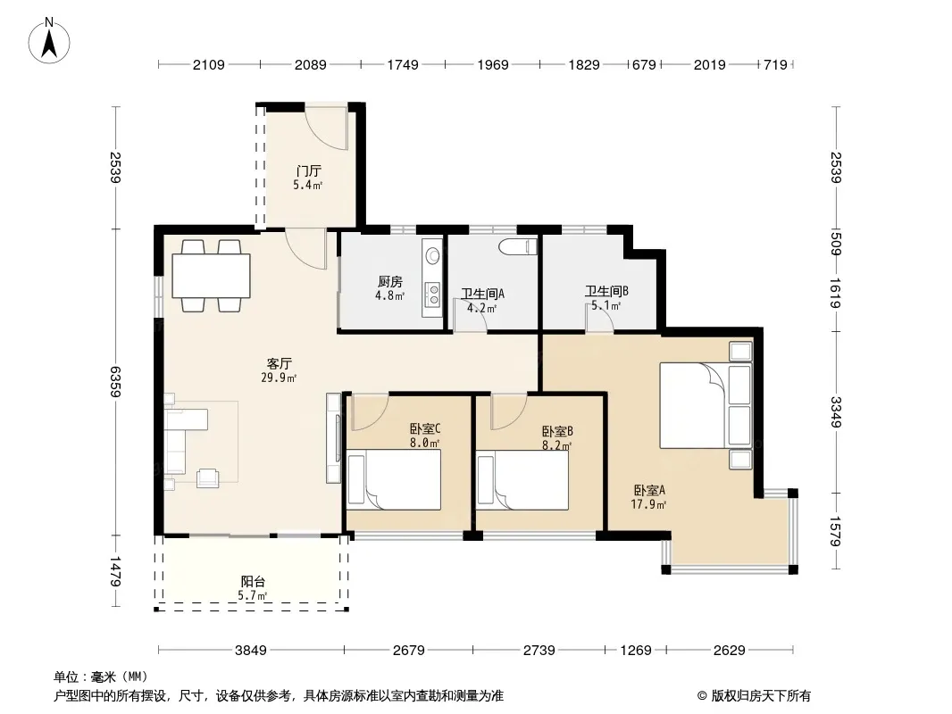 户型齐全,主打户型方正,明卫,明厨,主卧朝南三居