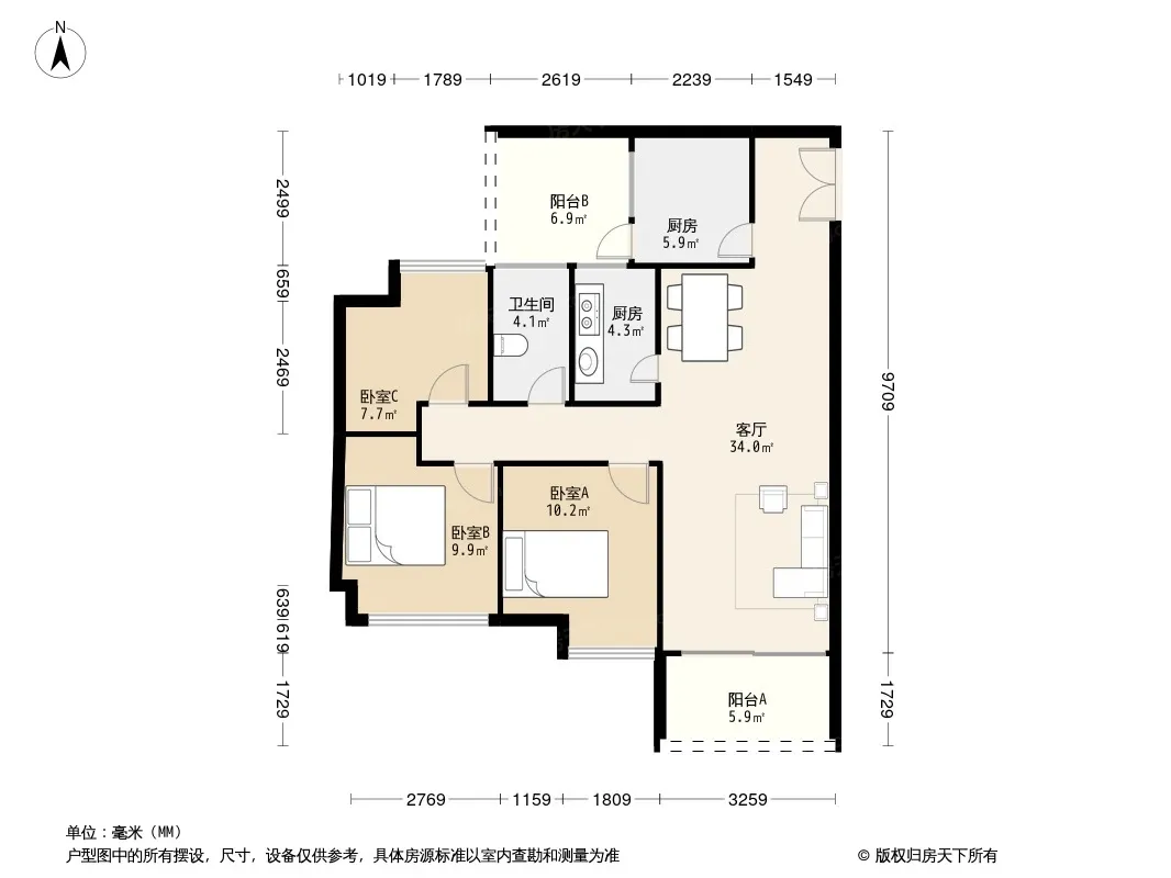 户型齐全,主打明厨,明卫三居