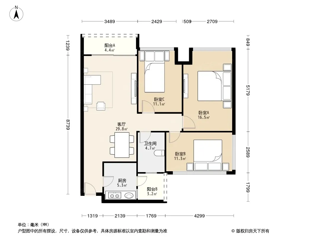 户型齐全,主打户型方正,明厨明卫三居