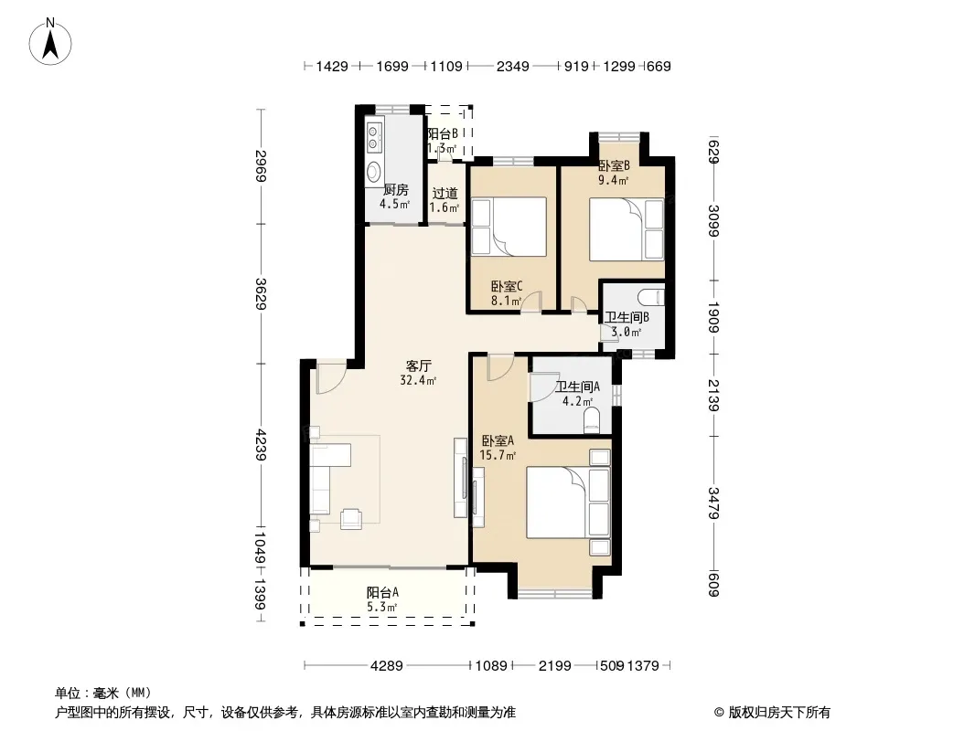 户型齐全,主打户型方正,明厨,明卫,双阳台,主卧朝南三居