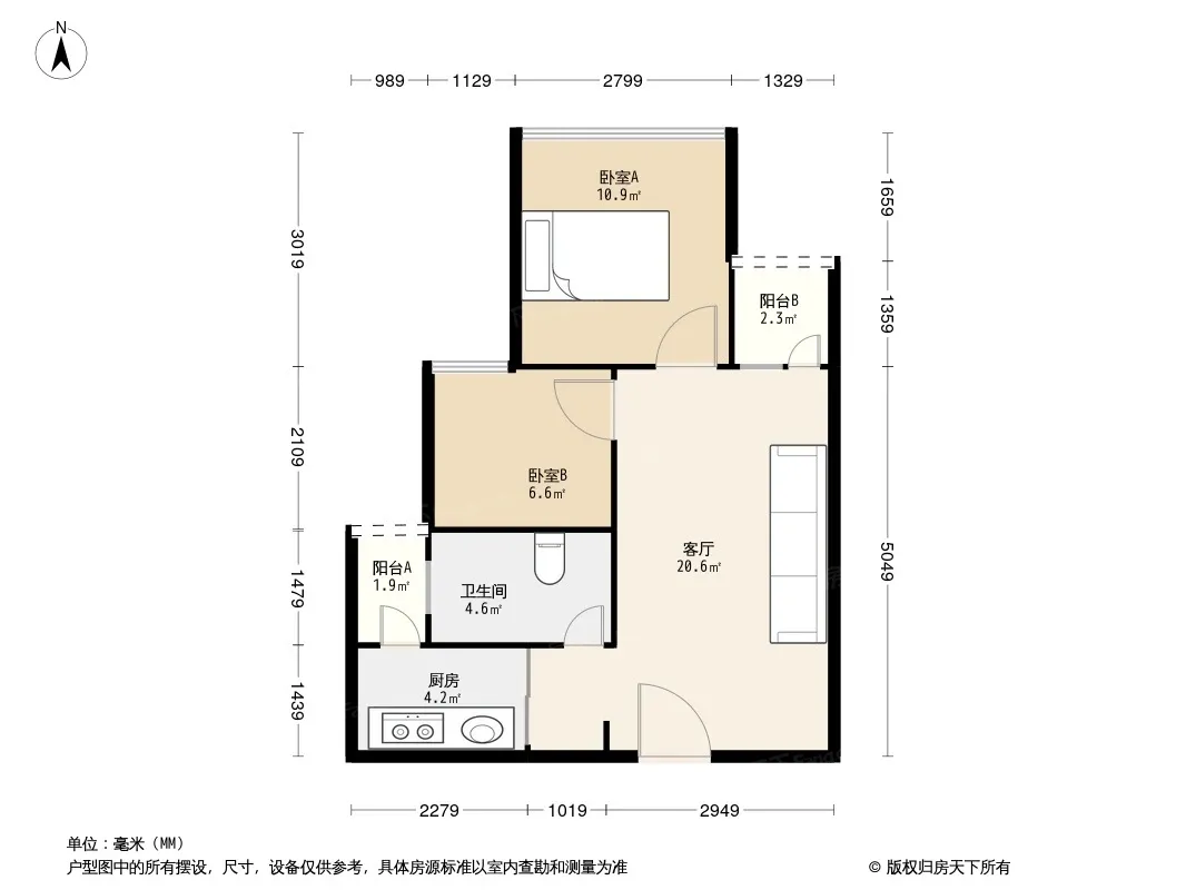 户型齐全,主打户型方正,双阳台二居