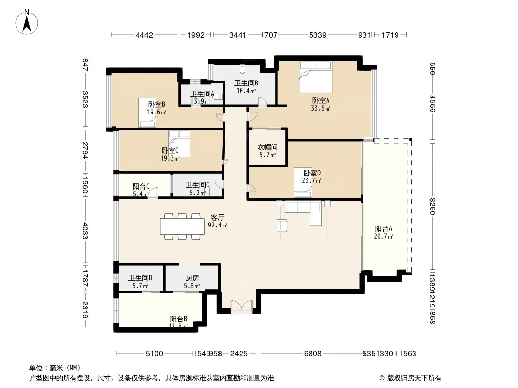 户型齐全,主打户型方正,明卫,独立衣帽间,主卧朝南四居