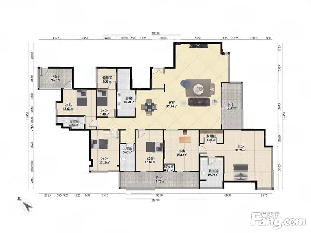 户型齐全,主打户型方正,明卫,独立衣帽间,主卧朝南四居