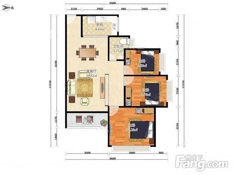 户型齐全,主打明卫,双卧朝南,主卧朝南三居
