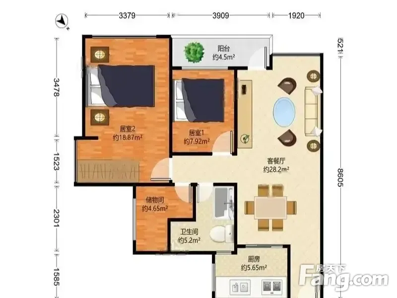 此房满五唯一,客厅出阳台,户型方正实用。