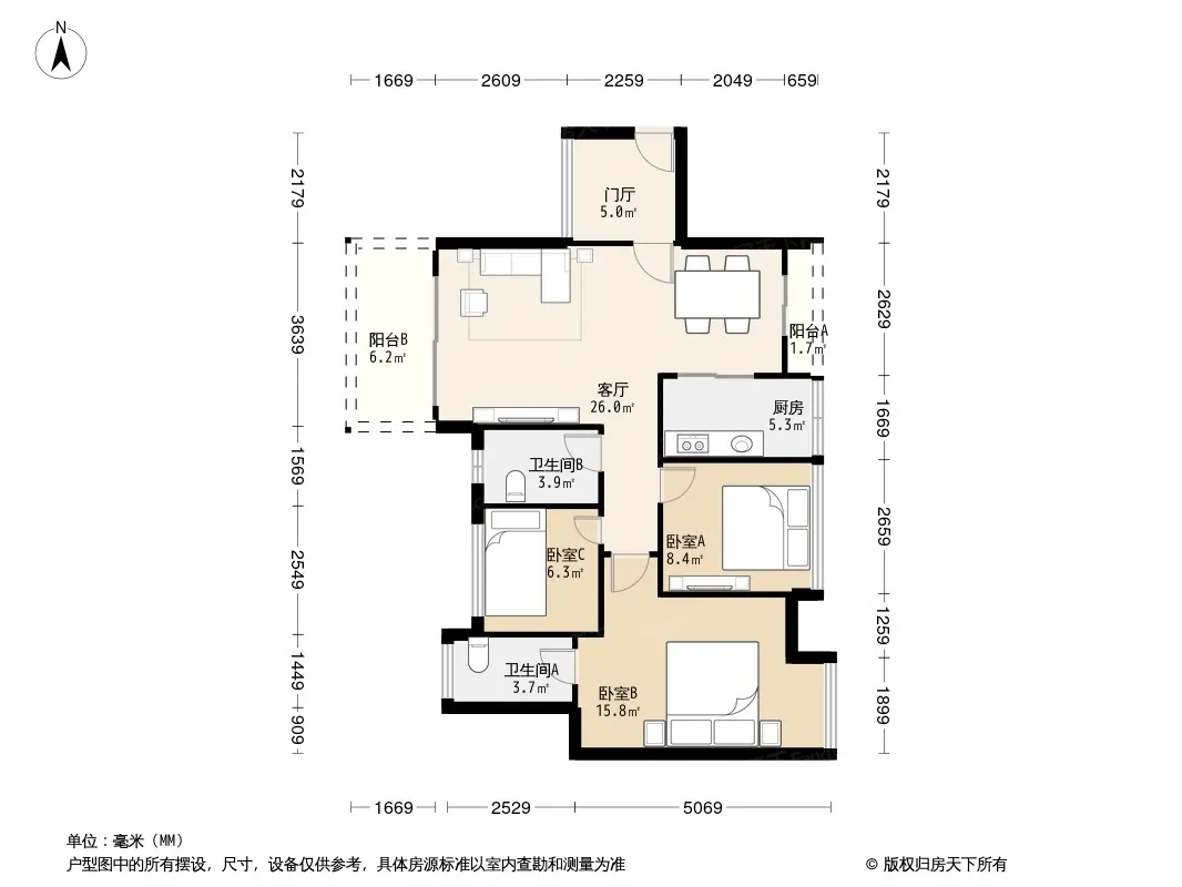 户型齐全,主打户型方正,明卫,明厨,客厅朝南三居