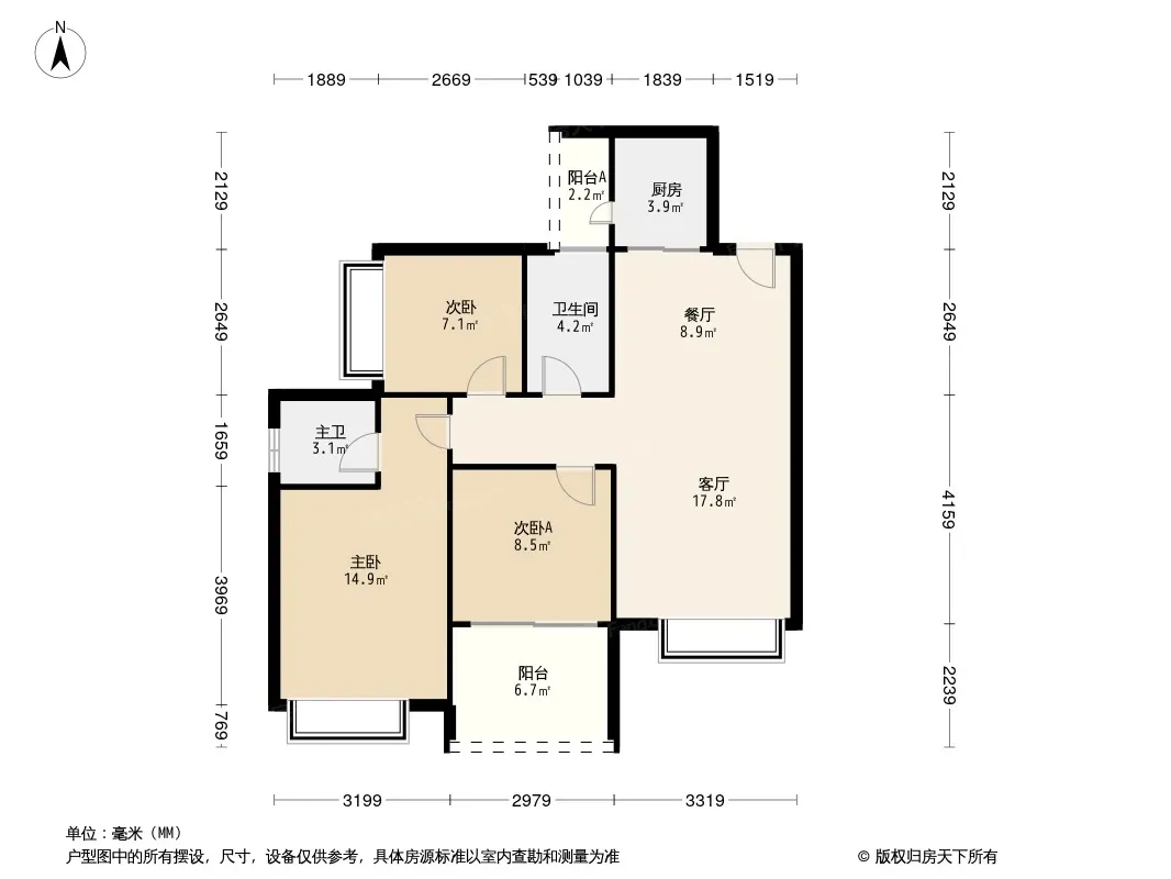 户型齐全,主打主卧带卫,厨卫不对门三居