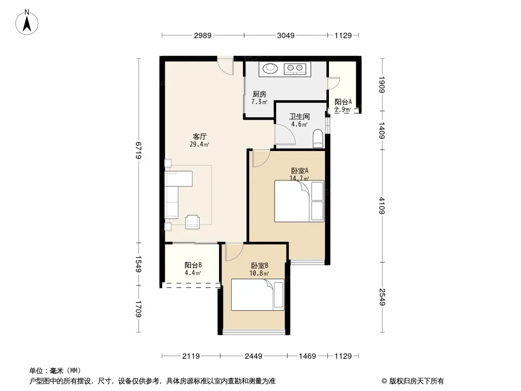 户型齐全,主打明卫,双阳台三居