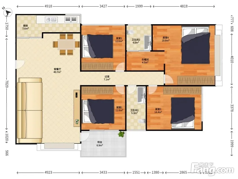户型齐全,主打主卧带卫,厨卫不对门,带衣帽间四居