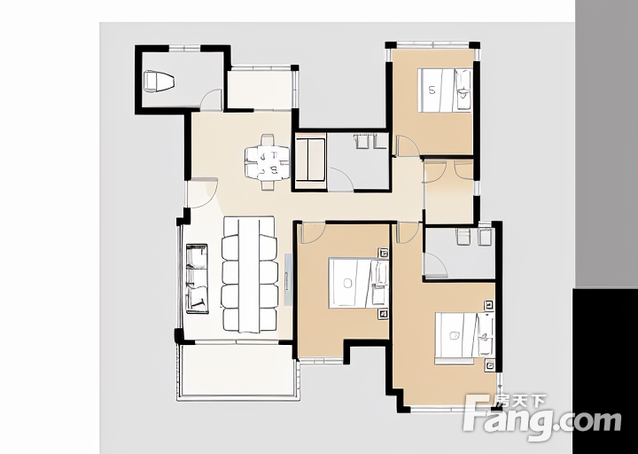 户型齐全,主打户型方正,明卫,明厨,独立衣帽间,双卧朝南,主卧朝南三居