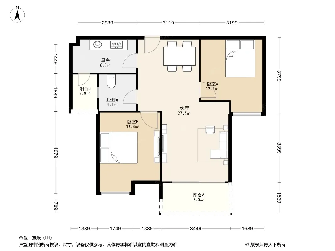 户型齐全,主打户型方正,明卫,明厨,独立衣帽间,双卧朝南,主卧朝南三居