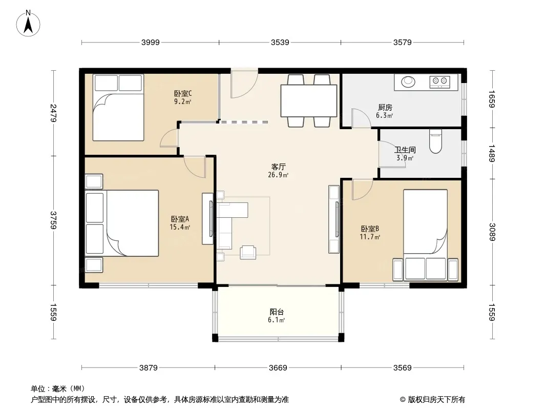 户型齐全,主打明卫,明厨三居