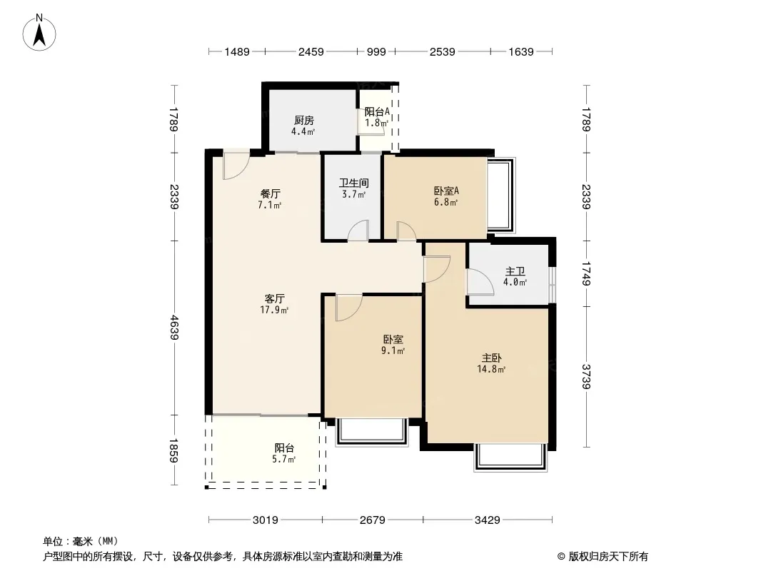 户型齐全,主打主卧带卫,厨卫不对门三居