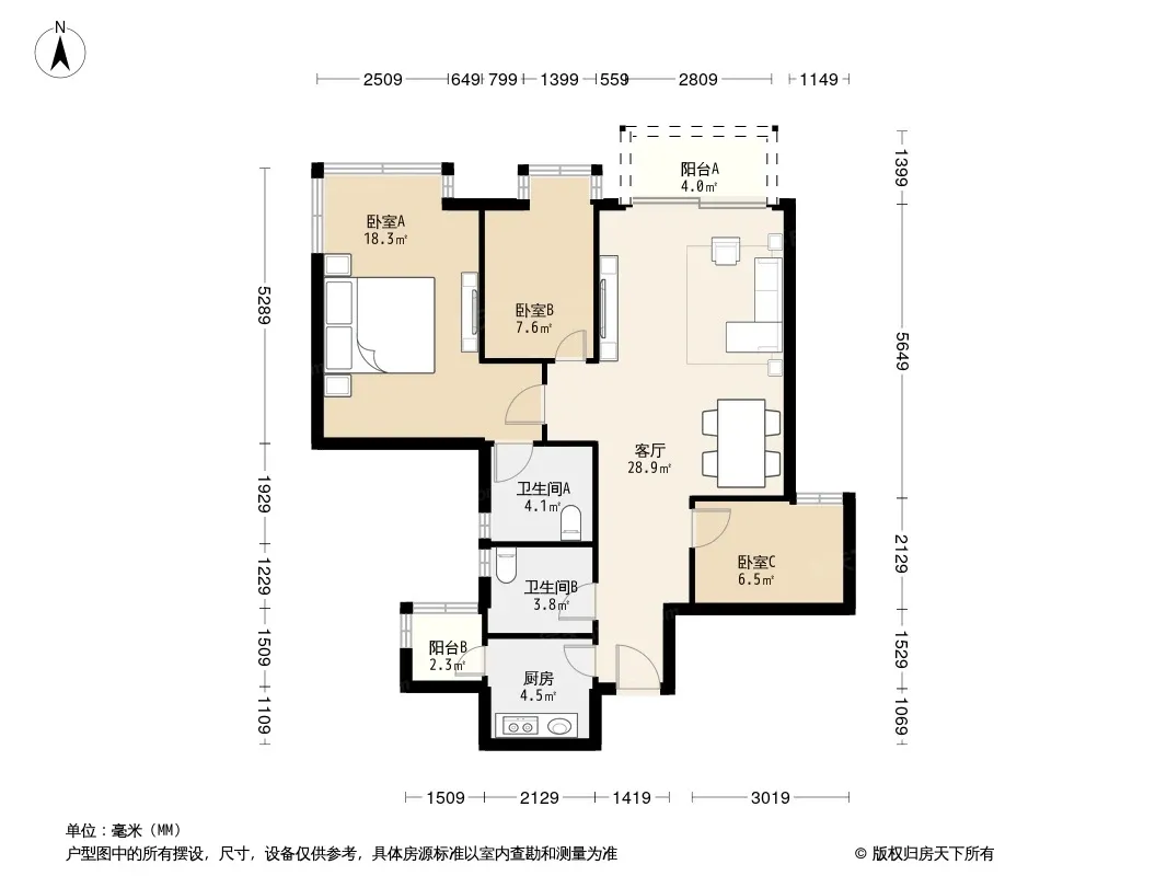 户型齐全,主打明卫三居