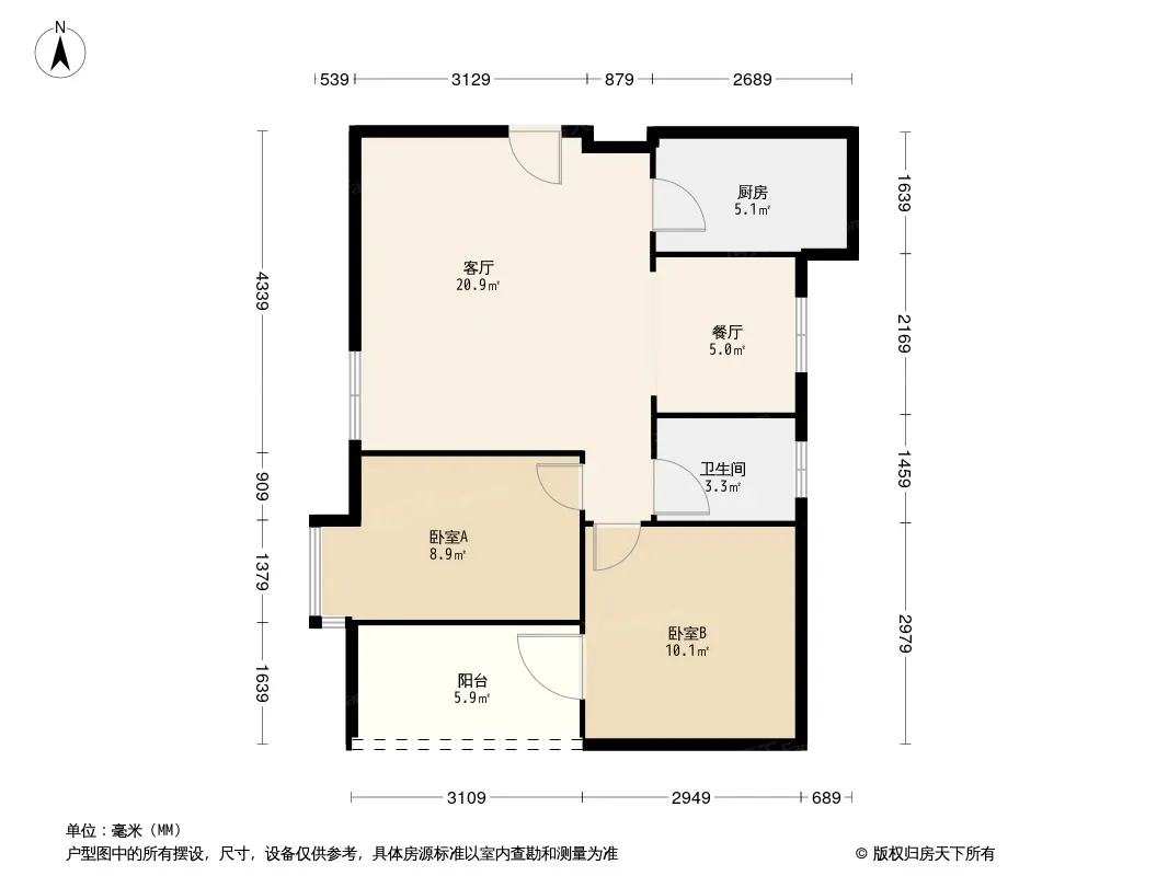 户型齐全,主打户型方正,明厨,明卫,客厅朝南,全明格局二居