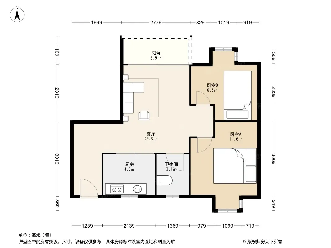 户型齐全,主打户型方正,明厨,明卫,客厅朝南二居