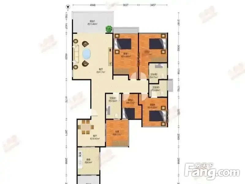 南北通透,采光好,使用面积高做了5房3卫