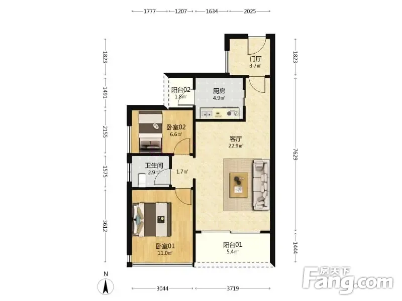 金地梅陇镇三期 南 精装 3室 2厅 73.97m²