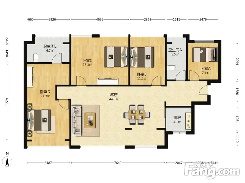 户型齐全,主打采光充足,主卧带卫四居