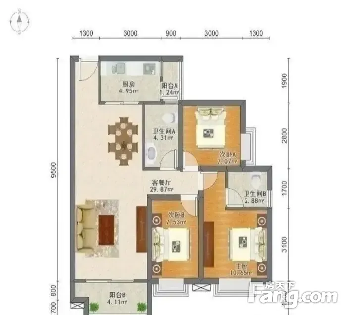 户型齐全,主打南北通透,户型方正三居