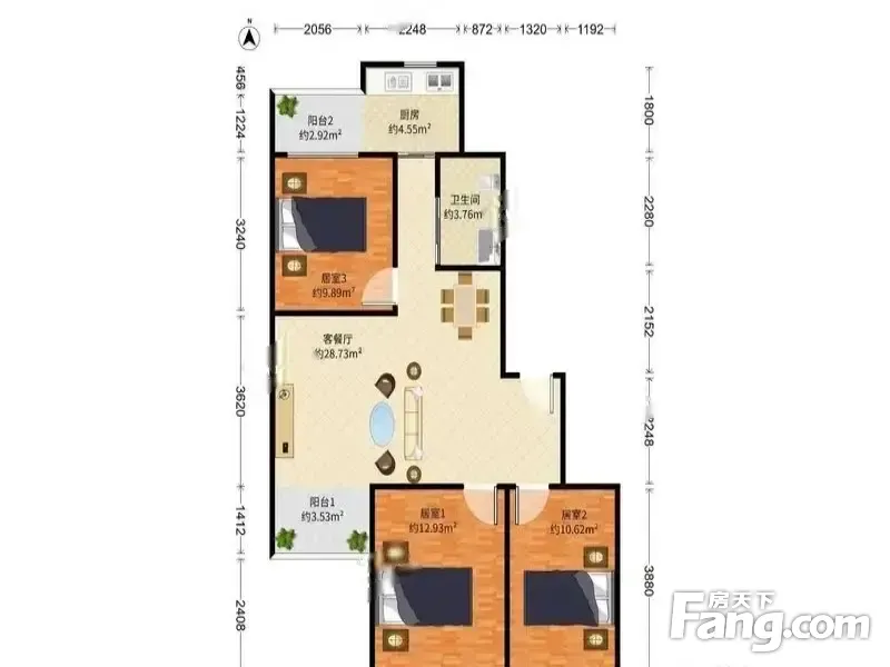 户型齐全,主打明卫,客厅朝南三居