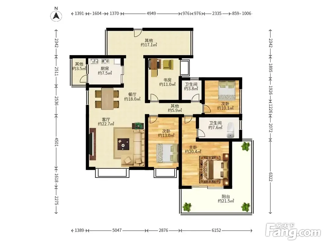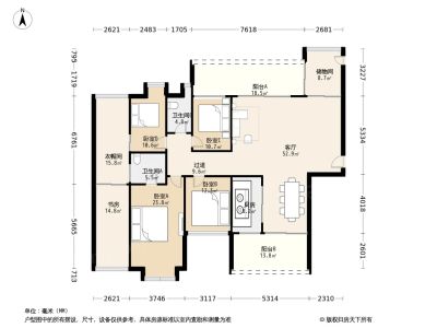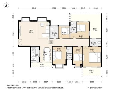 奥林华府 5房2厅2卫 158㎡