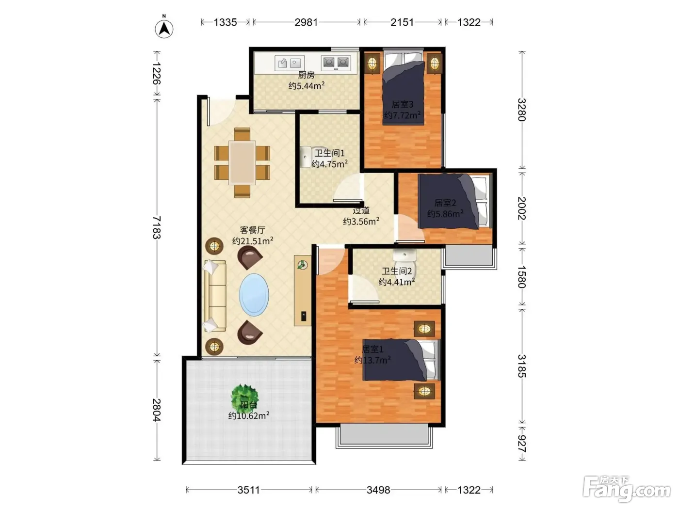 3室1厅2卫