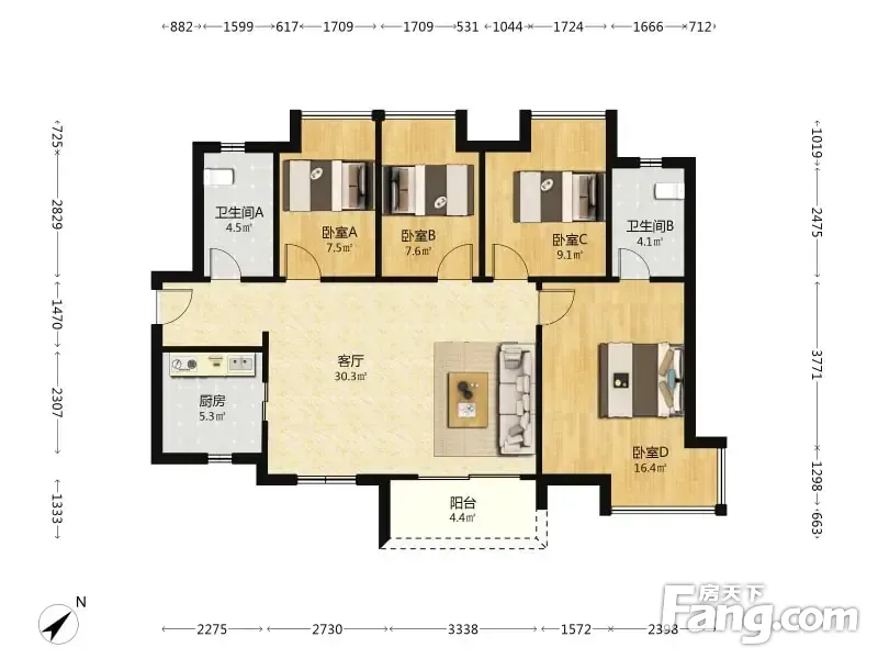 玺悦台 4室1厅 东南
