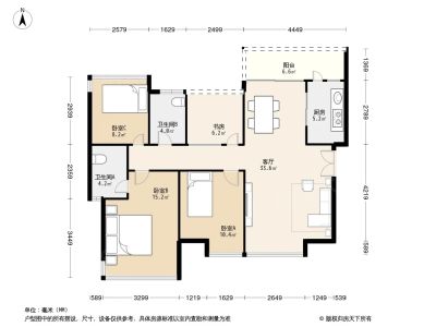 山海美域花园 4房2厅2卫 110.3㎡