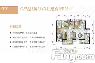 户型齐全,主打户型方正,动静分离二居