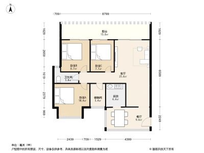 翡翠明珠花园3房2厅1卫83.6㎡