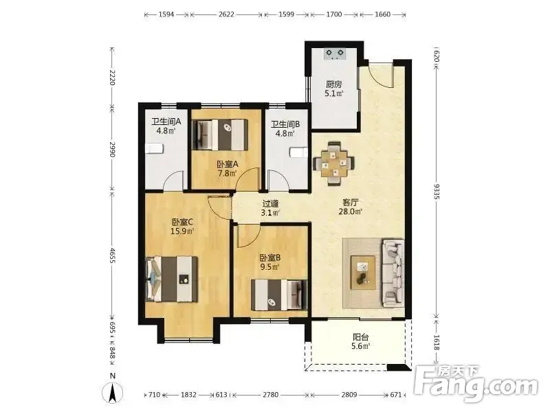 3室2厅1卫