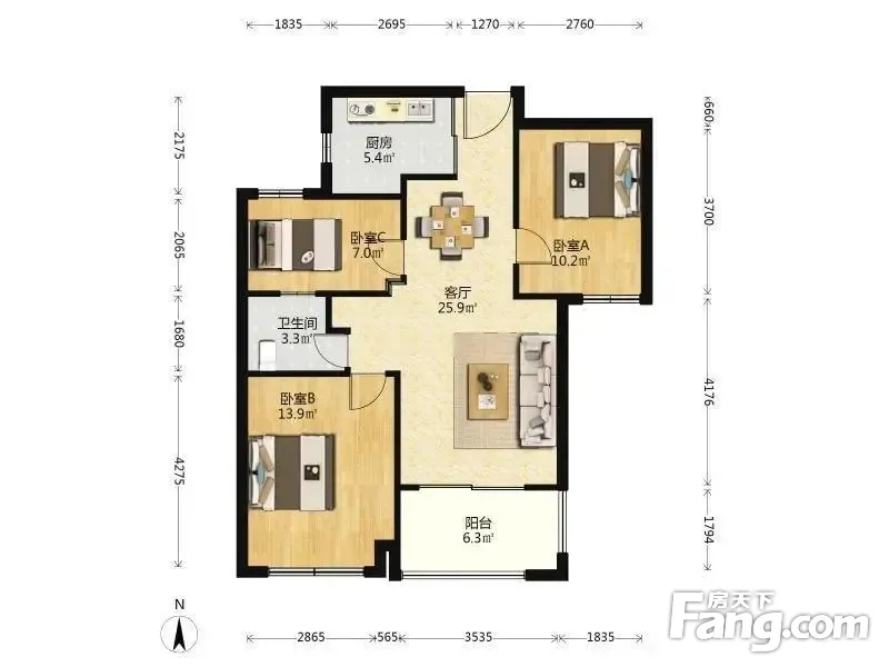 3室2厅1卫