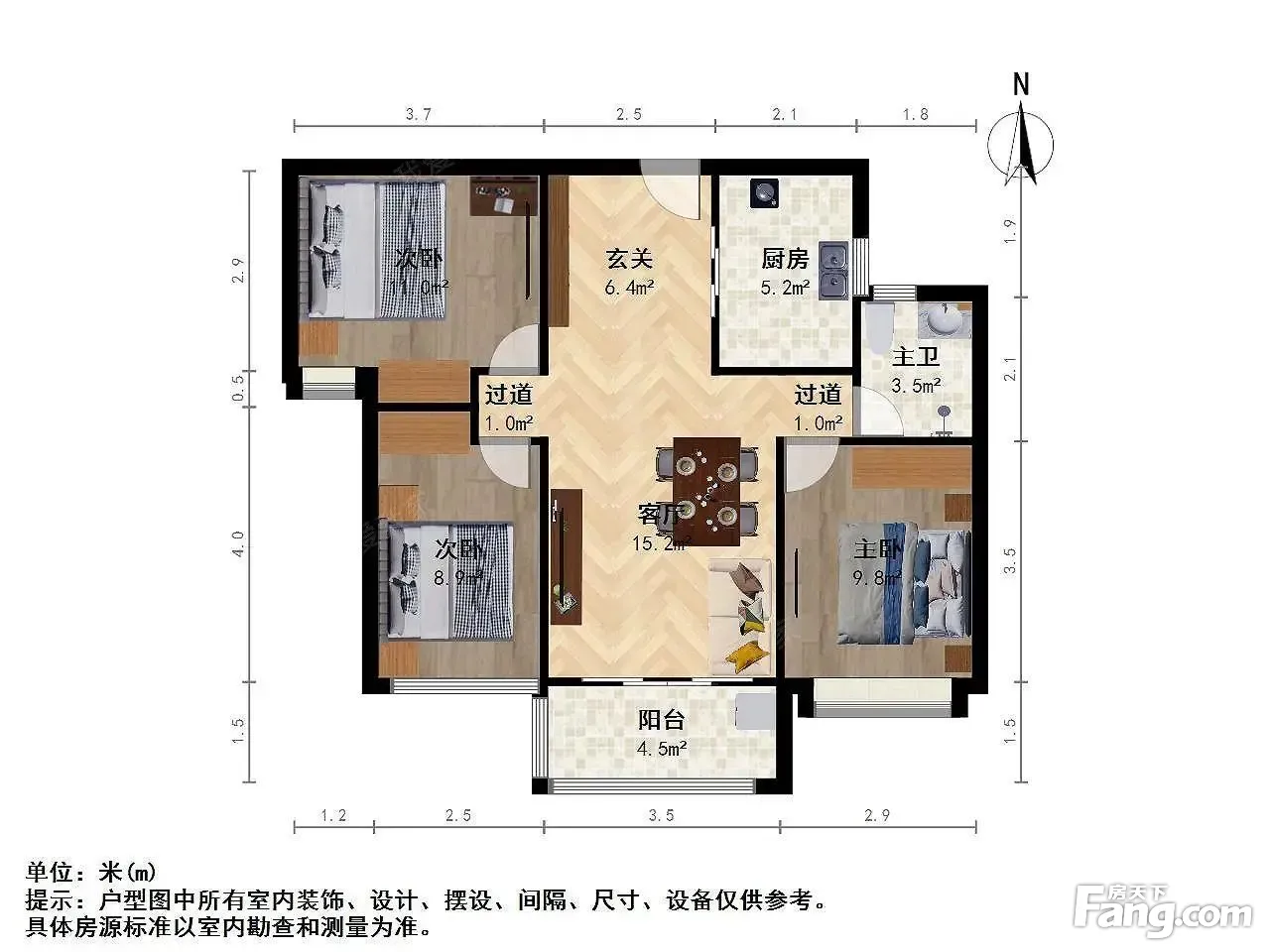 户型解读: 精装修 中间楼层 采光好 小区中 心 位置