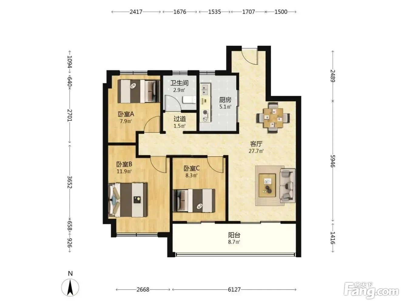 3室2厅1卫