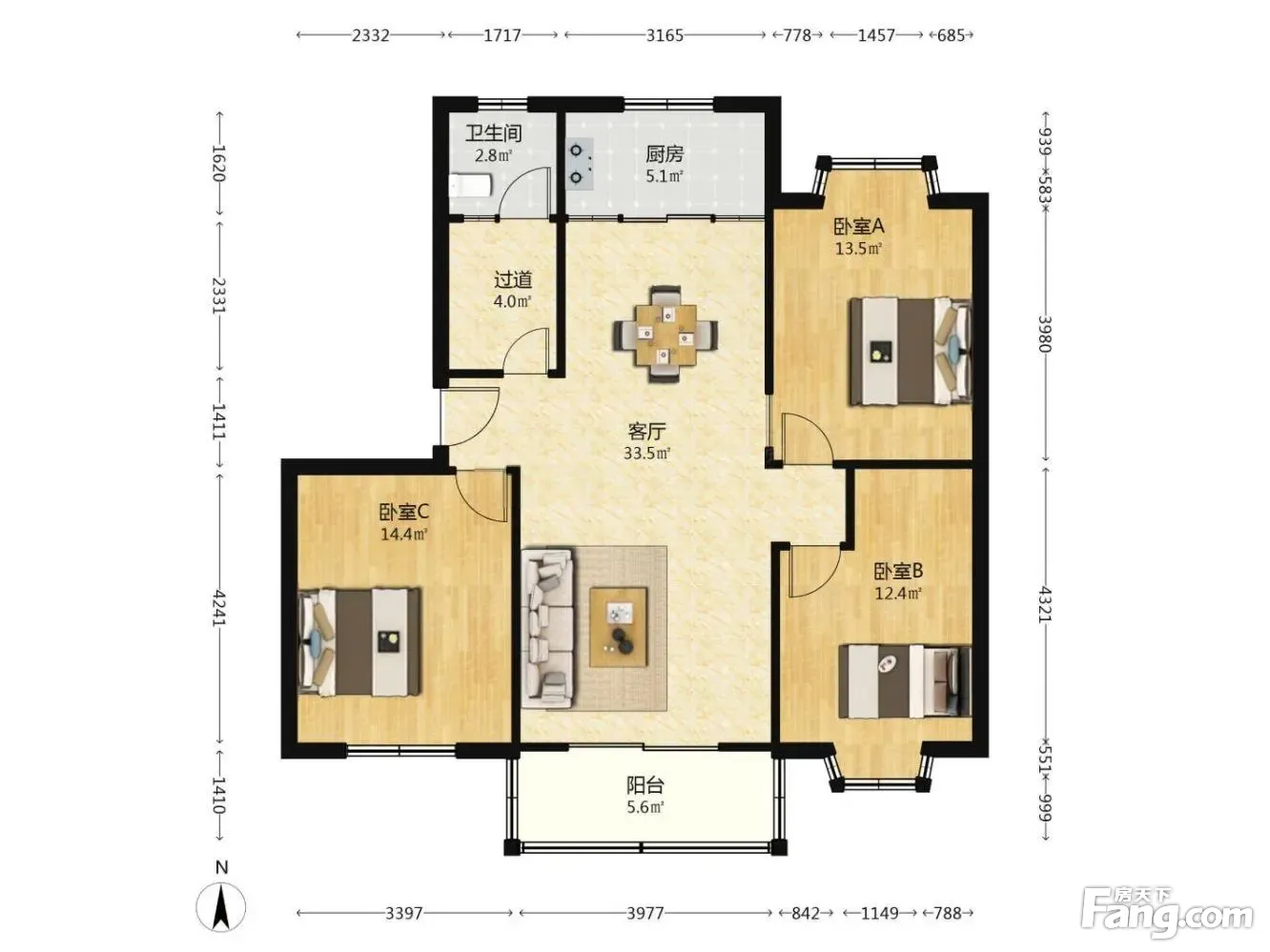 3室2厅1卫
