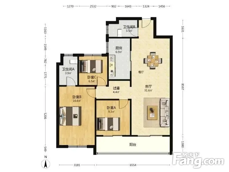 3室2厅1卫