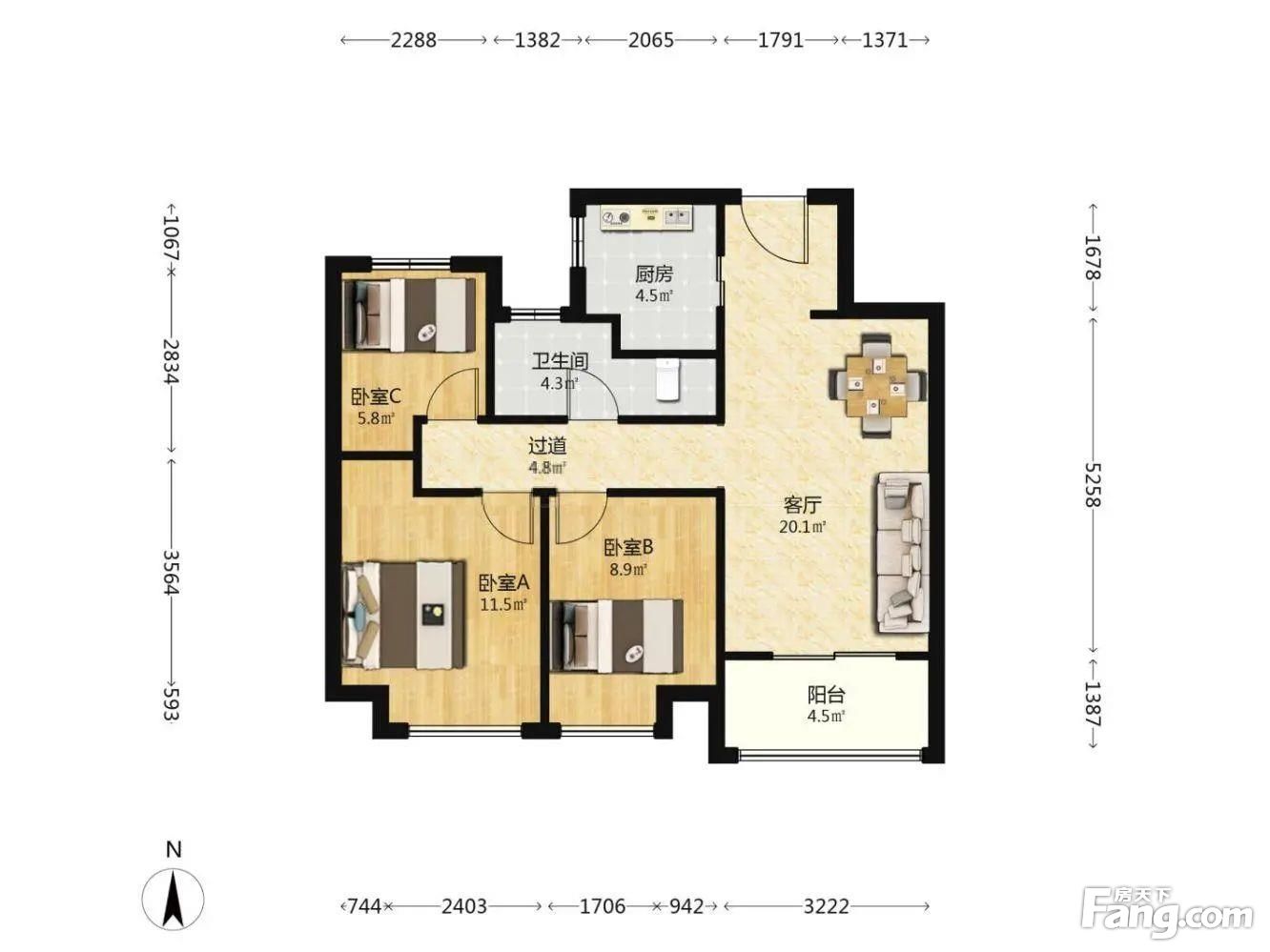 3室2厅1卫