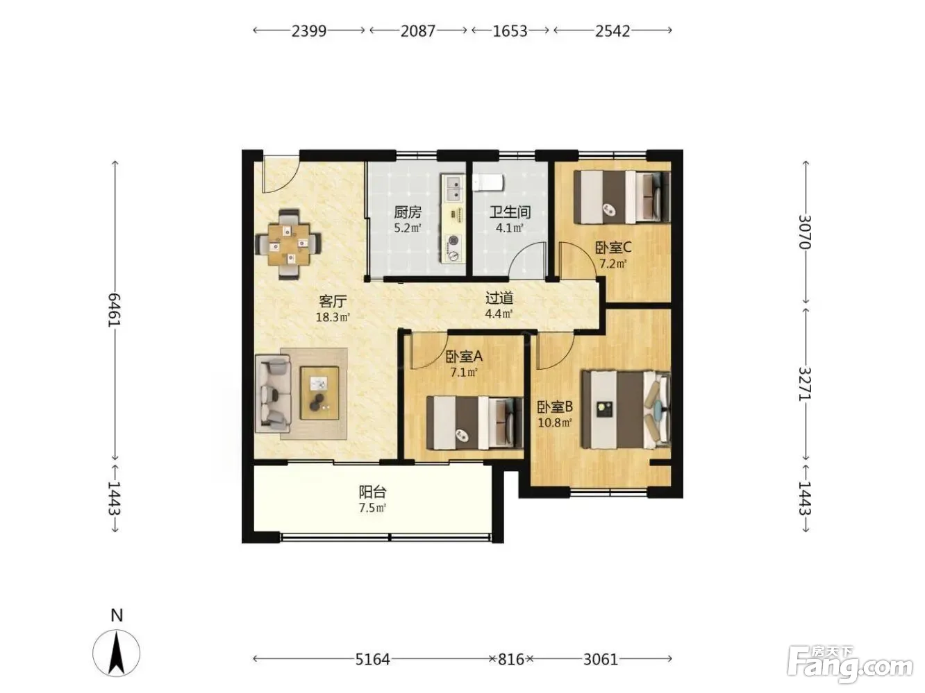 3室2厅1卫