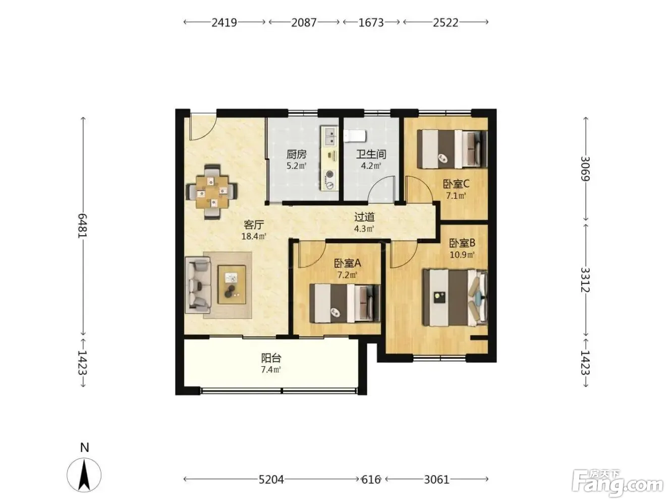 3室2厅1卫