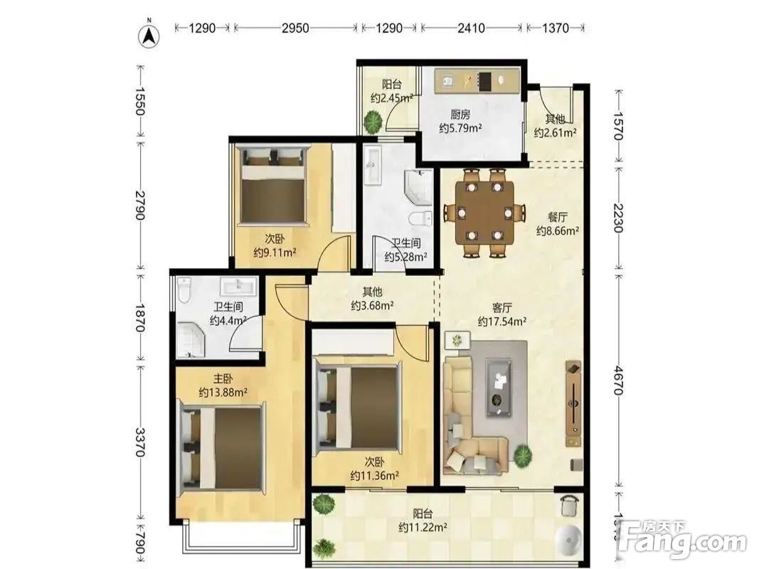 户型解读: 南北通透 小区中间位置 采光无遮挡