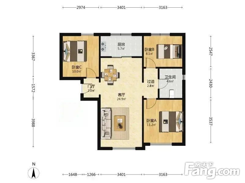 3室2厅1卫