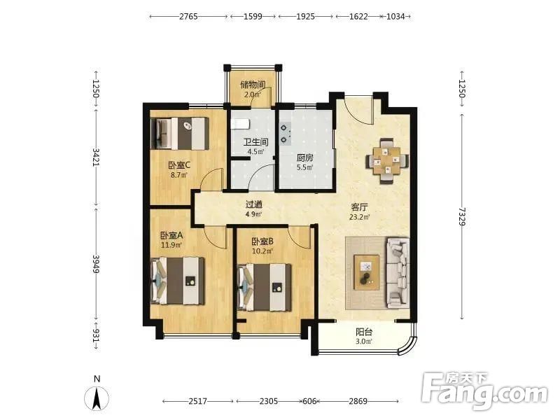 3室2厅1卫