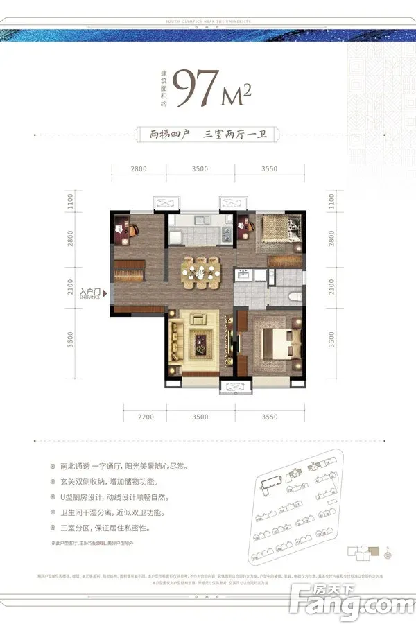户型齐全,主打南北通透,全明格局,干湿分离三居