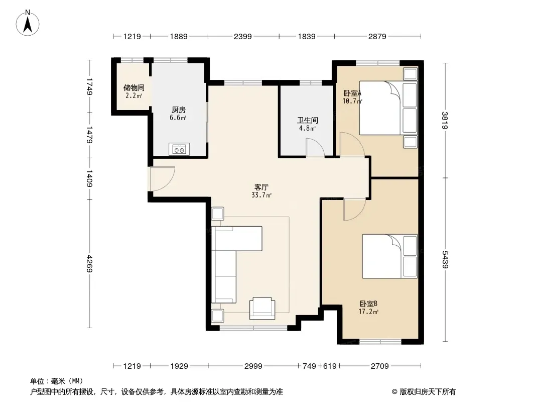 户型齐全,主打户型方正,明卫,明厨,客厅朝南,全明格局二居