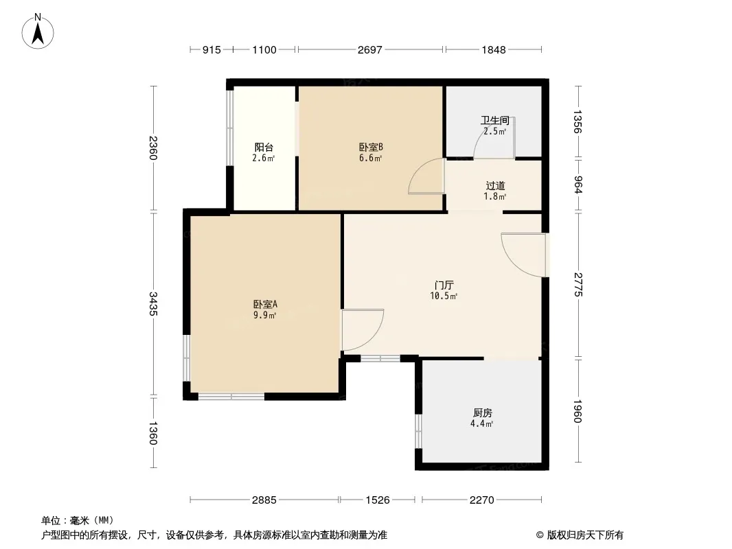 户型齐全,主打客厅朝南,主卧朝南二居
