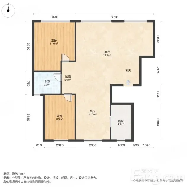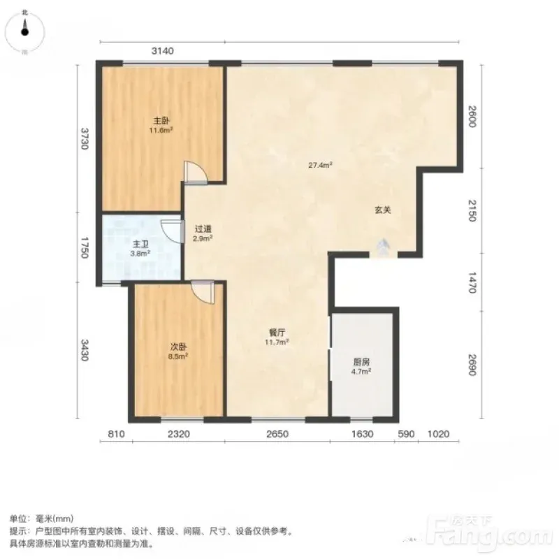 北辰 融创津宸壹號 2室1厅 104.54㎡ 91万