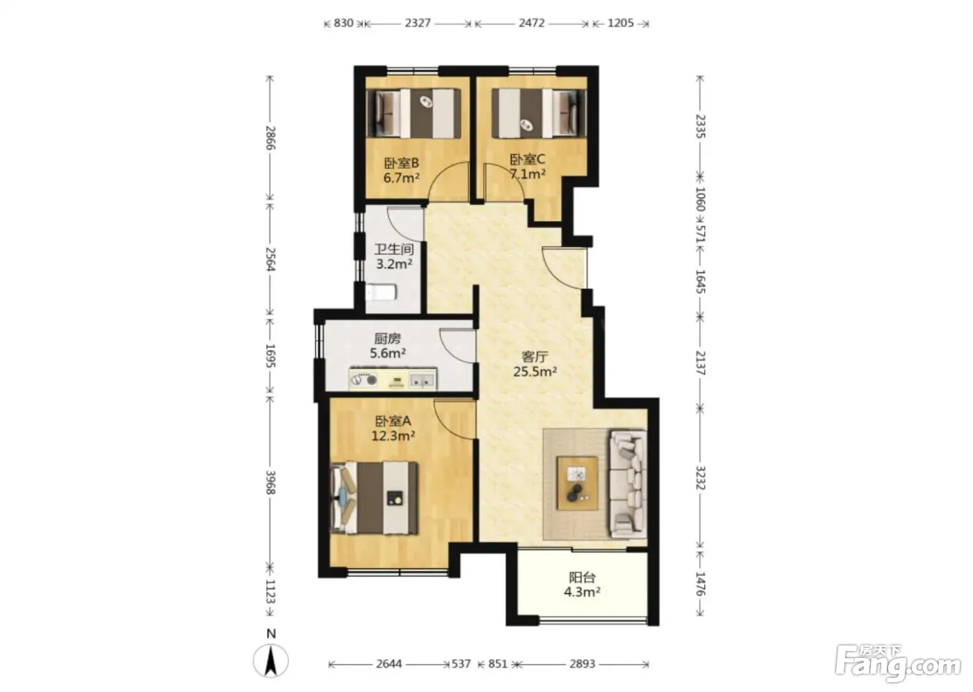 3室2厅1卫