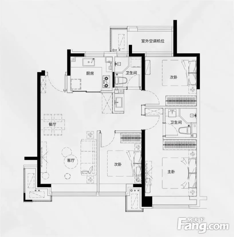户型齐全,主打全明格局,户型方正三居