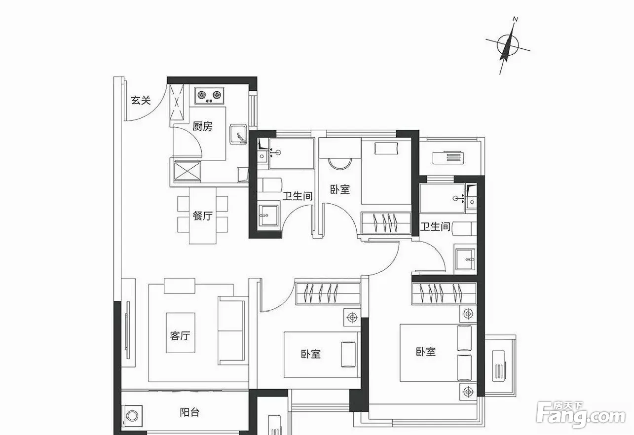 户型齐全,主打南北通透,全明格局三居